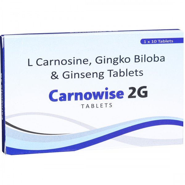 Carnowise 2G Tablet is a health supplement. It is enriched with L-Carnosine, Gingko Biloba and Ginseng.