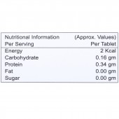 Energy: 2 kcal, Carbohydrate: 0.16 g, Protein: 0.34 g, Fat: 0.00 g, Sugar: 0.00 g.