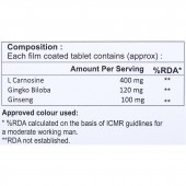 L-Carnosine: 400 mg, Gingko Biloba: 120 mg, Ginseng: 100 mg.