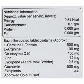 • Generic Name: L-carnitine L-tartrate + L-arginine + Co-enzyme Q10 + Lycopene + Zinc + Curcumin