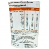 Sugar, Water, Liquid Glucose, Gelling Agent (440), Acidity Regulators (270, 331(iii), 296), Vitamins, Probiotic Culture (Bacillus Coagulans- MTCC25250), Colour (160a(iii)), Natural Identical (Orange) Flavour and Mineral (Zinc Citrate).