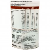Sugar, Water, Liquid Glucose, Gelling Agent (440), Acidity Regulators (270, 331(iii), 296), Vitamins, Probiotic Culture (Bacillus Coagulans- MTCC25250), Colour (160a(iii)), Natural Identical (Orange) Flavour and Mineral (Zinc Citrate).