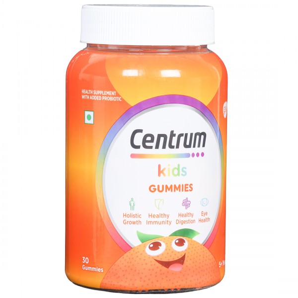 Centrum Kids Gummy is a health supplement for the holistic growth in kids aged 5+ years. It contains added probiotic, multivitamin and minerals for healthy digestion, healthy immunity and eye health. It is a non GMO gummy with no added artificial flavours.