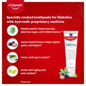 - Colgate Diabetics is a tailor-made ayurvedic toothpaste, containing Gurmar/Madhunashini - known for healing wounds, it is also a well-known sugar destroyer, Jamun seed extracts - well known astringent and Neem that is a known for its anti-germ and anti-inflammatory properties