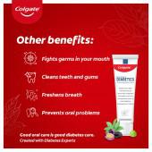 - Colgate Diabetics also fights germs in the mouth, cleans teeth and gums, freshens breath and prevents oral problems
