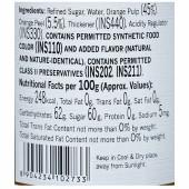 Ingredients -Refined Sugar, Water, Orange Pulp, Orange peel, Thickener, Acidity regulator.