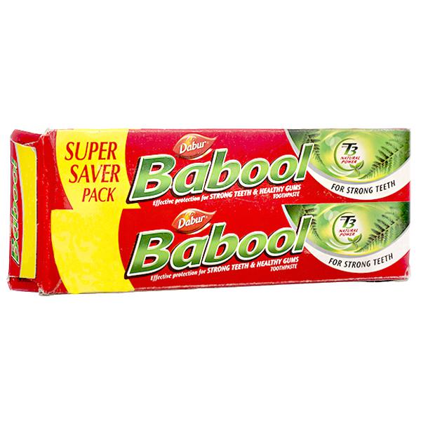 Babool Toothpaste is natural toothpaste packed with the medicinal benefits of Babool tree extract 'Acacia Arabica', used traditionally to clean teeth in India. The Babul herbal extract in Dabur's Babool Toothpaste helps keep your gums healthy and teeth strong by preventing swelling, bleeding and decay. The tooth paste has the Natural T3 Power which has a unique 1-2-3 action that gives the teeth effective protection. T1, its antibacterial power fights against germs, T2, Forms a protective layer over gums and protects it against Germs & T3, its astringent action tightens the gums. Brush teeth twice daily with Babool toothpaste for maximum benefits. With the Super Saver pack, get two Babool toothpaste at Rs.70 only.