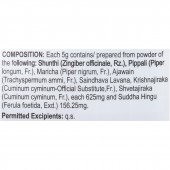 Shunthi (Zingiber officinale, Rz.), Pippali (Piper longum, Fr.), Maricha (Piper nigrum, Fr.), Ajawain (Trachyspermum ammi, Fr.), Saindhava Lavana, Krishnajiraka (Cuminum cyminum-Official Substitute, Fr.), Shvetajiraka (Cuminum cyminum, Fr.), each: 625 mg, Suddha Hingu (Ferula foetida, Exd.): 156.25 mg.
