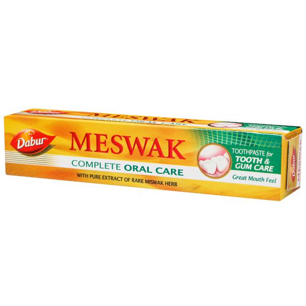 Product Information - Miswak Herb is a rare, potent, priceless, wonder herb that delivers incredible Oral Care benefits. It grows slowly resisting the brutal forces of nature amongst the sand dunes of Africa and South Asia. Dabur brings this wonder herb in the form of 'Meswak' toothpaste . It is scientifically proven to reduce tarter & plaque, fights germs & bacteria to keep gums healthy, helps prevent tooth decay, eliminates bad breath and ensures strong teeth. In short, Dabur Meswak provides Complete Oral Care. Meswak is a scientifically formulated herbal toothpaste with pure extract of the Miswak plant. The astringent and anti-bacterial properties of Meswak help reduce tooth decay, fight plaque and prevent gum diseases.