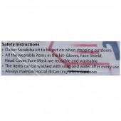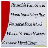 1 N Reusable Face Shield, 1 N Hand Sanitizing Rub (60 ml), 1 N Reusable Face Mask, 1 N Washable Hand Gloves and 1 N Reusable Head Cover.