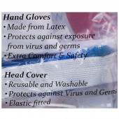 - All the wearable items in the kit- Gloves, Face Shield, Head Cover, Face Mask are reusable and washable.