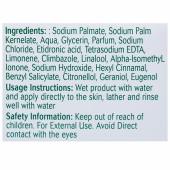 Sodium Palmate, Sodium Palm Kernelate, Aqua, Glycerin, Parfum, Sodium Chloride, Etidronic Acid, Tetrasodium EDTA, Limonene, Climbazole, Linalool, Alpha-Isomethyl Ionone, Sodium Hydroxide, Hexyl Cinnamal, Benzyl Salicylate, Citronellol, Geraniol, Eugenol