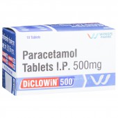 Diclowin 500 mg Tablet is an effective antipyretic and analgesic medication that contains Paracetamol. It is commonly used to treat and prevent mild to moderate pain, including headaches, migraines, and menstrual discomfort. Additionally, it helps to reduce fever and alleviates symptoms associated with the flu, rheumatic conditions, muscle aches, and post-operative pain.
