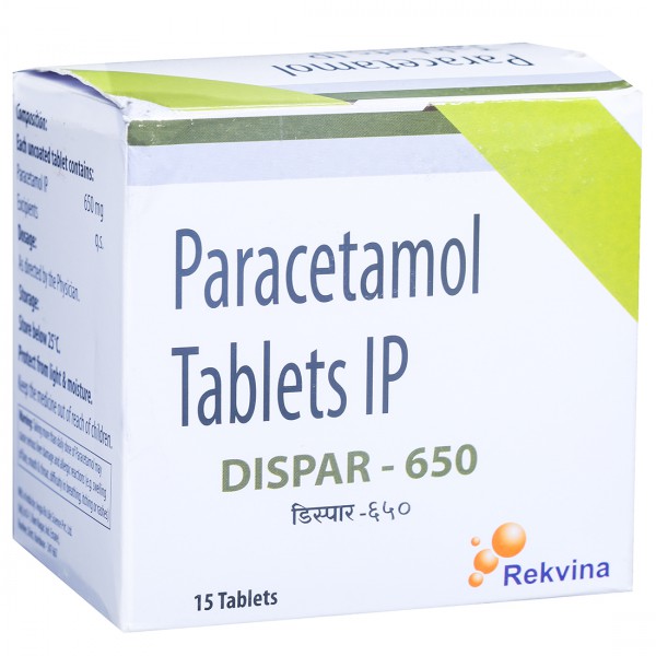 Dispar 650 Tablet is an analgesic agent (painkiller) that helps to get relieve from pain and body aches associated with fever, such as headaches, toothaches, sore throats, earaches, colds, and influenza. It is formulated with paracetamol, which is also an antipyretic agent, used to treat or prevent fever (high temperature). It is also useful for menstrual pain, back pain, and so on.