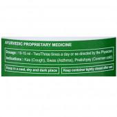 Solanum Indicum) Pl. 0.48 g, Justica Gendarussa Lf. 0.24 g, Adhatoda Vasica Lf. 0.24 g, Viola Odorata Pl. 0.24 g, Ocimum Sanctum Lf. 0.24 g, Piper Longum Fr. 0.12 g, Cinnamomum Zeylanicum St. Bk. 0.12 g, Syzigium Aromaticum Bd. 0.12 g, Zingiber Officinale Rz. 0.12 g, Ephedra Gerardiana Branches 0.12 g, Cinnamomum Tamala Lf. 0.12 g, Eclipta Alba Bk. 0.12 g, Cordia Dichotoma Fr. 0.12 g, Cassia Fistula Fr. Pp. 0.12 g, Glycyrrhiza Glabra Rt. 0.48 g, Piper Nigrum Fr. 0.05 g, Saccharum Officinarum St. Juice 6.95 ml, Excipients: Citric acid 0.02 mg, Preservative: Sodium Benzoate 0.02 mg