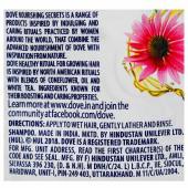 Product Information – Dove healthy ritual for growing hair shampoo repairs damage and prevents loss and split of hair.