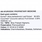 Kumari(Aloe barbadensis) Leaf Extract: 90.00%, Cucumber(Cucumis sativus) Fruit Extract: 5.00%, Additives: q.s.
