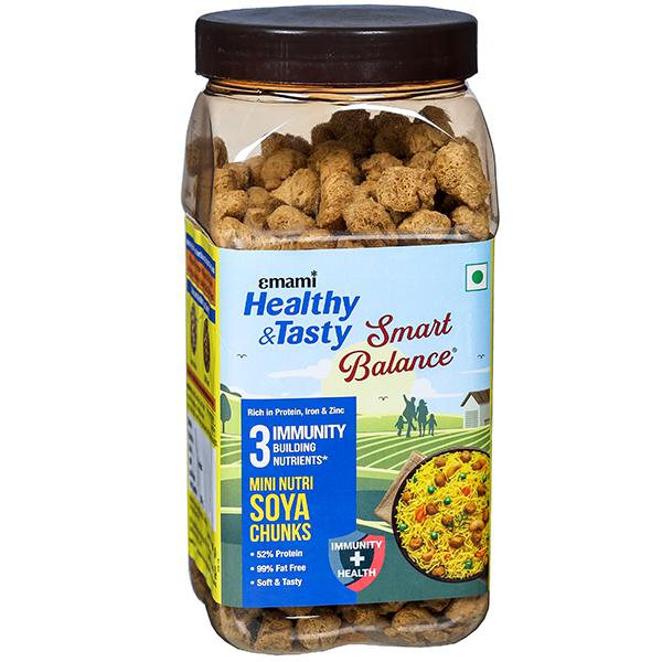 Product Information -. Emami Healthy & Tasty Smart Balance Nutri Soya Chunks are made from soy flour. Soya Chunks contain immunity-building nutrients, protein, iron and zinc. It is rich in dietary fibre and strengthens your immunity. It is very easy to prepare and makes tasty dishes. They are a blank canvas that you can paint on, they are odourless and tasteless by themselves. It can be used in many dishes and it is healthy and a good source of calcium. It is also a great replacement for chicken or any other meat.