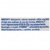 hydrolyzed corn starch, maltodextrin, vegetable oil (high oleic sunflower seed oil, soybean oil, canola seed oil), milk protein concentrate, sucrose, oligofructose (FOS), soy protein isolate, sodium citrate, potassium citrate, flavouring (0.7%), magnesium chloride, potassium chloride, calcium phosphate tribasic, choline chloride, calcium carbonate, ascorbic acid, Vitamin E, niacinamide, pyridoxine hydrochloride, riboflavin, Vitamin A palmitate, cupric sulfate, thiamin hydrochloride, beta carotene, folic acid, chromium chloride, potassium iodide, sodium molybdate.