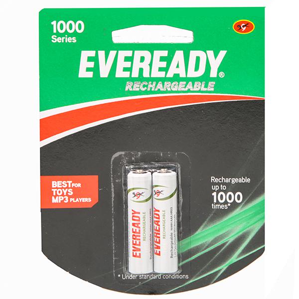 Product Information - Eveready Rechargeable 1000 Series 2AAA Battery Cost Effective - A one-time buy, rechargeable batteries can be reused number of times. Eveready Rechargeable batteries can last for very long, if used properly. Performance - Eveready Rechargeable 1000 Series 2AAA Battery are rechargeable up to 1000 times which ensure long life with less wastage, making them eco-friendly. Compatibility - These budget-friendly batteries cater to daily demands of your family as they power most electronic gadgets, wall clocks, torches and toys.