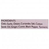 Chilli, Garlic, Onion, Coriander, Salt, Cotton Seeds Oil, Ginger, Cumin, Black Pepper, Turmeric