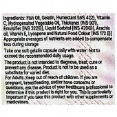 Fish Oil, Gelatin, Humectant [INS 422], Vitamin C, Hydrogenated Vegetable Oil, Thickener (INS 901), Emulsifier [INS 322(i)], Liquid Sorbitol [INS 420(ii)], Arachis Oil, Vitamin E, Lycopene and Natural Food Color [INS 172 (i)].