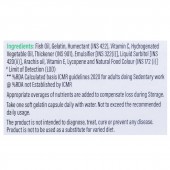 Fish Oil, Gelatin, Humectant (INS 422), Vitamin C, Hydrogenated Vegetable Oil, Thickener (INS 901), Emulsifier [INS 322(i)], Liquid Sorbitol [INS 420(ii)], Arachis oil, Vitamin E, Lycopene and Natural Food Colour [INS 172 (i)]