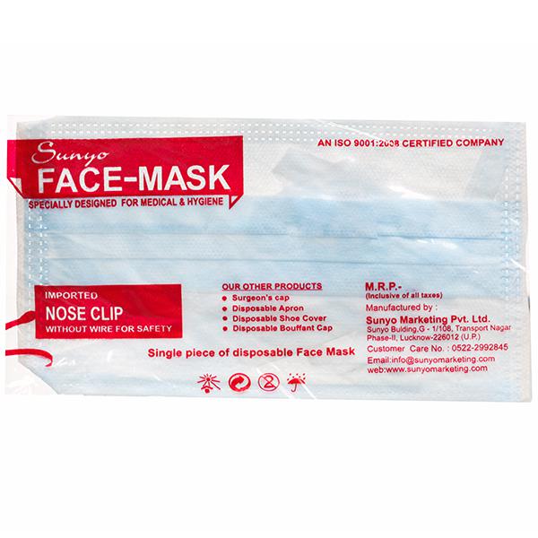 Face Mask (Sunyo Marketing) Surgeons keeps one safe by providing protection against dust, air pollution, vehicle smoke, sandy air and any sort of virus contamination. It is specially designed for medical and hygiene. This mask has a nose clip without wire for safety purposes.