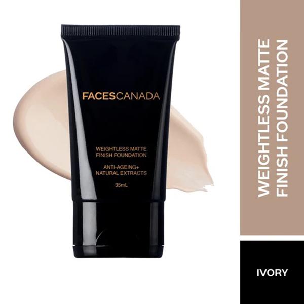 True to its name, the Faces Canada Weightless Matte Finish Foundation is a lightweight foundation, just perfect for daily use. Enriched with the goodness of grape extract, shea butter, and olive seed oil, this multi-benefit foundation blends effortlessly into the skin extending a soft matte finish that lasts throughout the day. Carefully formulated to not clog the pores, the multi-benefit foundation comes with anti-ageing benefits. Dermatologically tested and suited for all skin types, experience a naturally radiant makeup ready base, every day.
