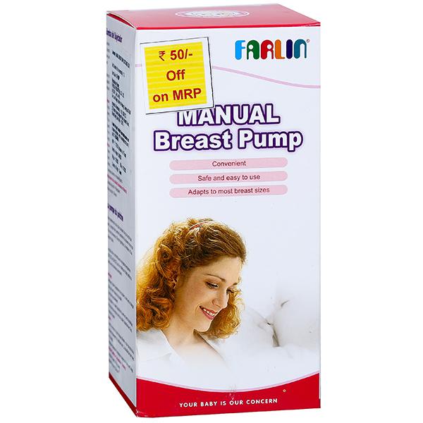 Product Information- Farlin Manual breast pump is most simple to operate. It has Suction release button for removing. The silicon liners are there for message of the breasts to relieve pain.