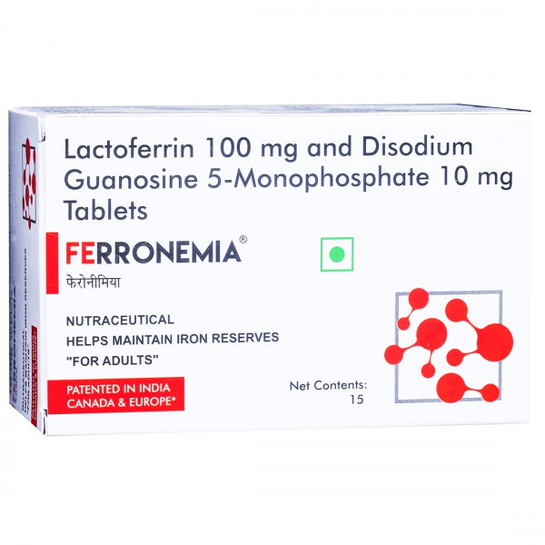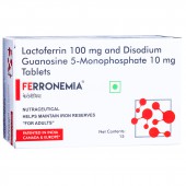 Ferronemia Tablet is a nutraceutical supplement, enriched with Lactoferrin &Disodium Guanosine 5-Monophosphate. It helps to maintain iron reserves.