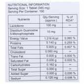 Lactoferrin: 100 mg, Disodium Guanosine 5-Monophosphate: 10 mg, Energy Value: 1.216 Kcal, Proteins: 0.140 g, Total Fats: 0.005 g, Cholesterol: 0.000 mg, Trans Fat: 0.000 g, Saturated Fat: 0.000 g, Carbohydrates: 0.162 g, Total Sugar: 0.000 g, Added Sugar: 0.000 g, Sodium: 0.120 mg