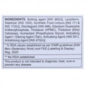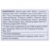Bulking agent [INS 460(i)], Lactoferrin. Stabilizer (INS 1202), Synthetic Food Colours [INS 171 & INS 172(ii)], Disintegrant (INS 466), Disodium Guanosine 5-Monophosphate, Thickener (HPMC), Thickener (Ethyl Cellulose), Humectant (Polyethylene Glycol), Anticaking Agent / Glazing Agent (Talc), Anticaking Agent (INS 551), Antisticking Agent [INS 470(iii)]
