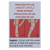 - Slide the support up the leg and over the knee.