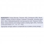 Choline Bitartrate, Thickener (462), Disintegrant (468), Diluent (46000), Glidants (470(iii) & 553(iii)), Pyridoxal 5 Phosphate, Anticaking Agent (551), ((6s)-5 Methyltetrahydrofolic acid glucosamine salt), Potassium Iodide, Biotin, Cyanocobalamin and Coating Contains [Coating Agent (464), Humectant (1518) and Colours (171, 174, 127, 132)].