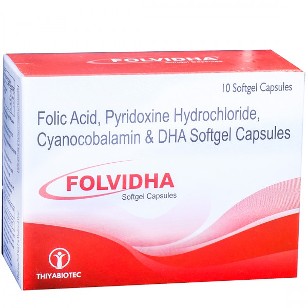 Folvidha Capsule is a nutraceutical supplement, enriched with Folic Acid, Pyridoxine Hydrochloride, Cyanocobalamin & DHA.