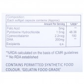 Folic Acid: 5 mg, Pyridoxine Hydrochloride: 1.5 mg, Cyanocobalamin: 2.2 mcg, DHA: 200 mg, Excipients:q.s