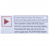 Gelatin (INS 428), Glycerin (INS 422), Sorbitol (INS 420i), Bees Wax (INS 901), Preservatives: BHT, BHA, 320, 321 & 218, 216 used in capsule shell.'Gelatin Food Grade'