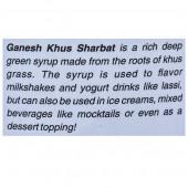 Khus Sharbat is a rich deep green syrup made from the roots of khus grass. The syrup is used to flavor milkshakes and yogurt drinks like lassi, but can also be used in ice creams, mixed beverages like mocktails or even as a dessert toppings!