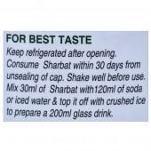 Method of preparation: Mix 30ml of Sharbat with 120ml of soda or iced water with rest of crushed ice to prepare a 200ml glass drink.