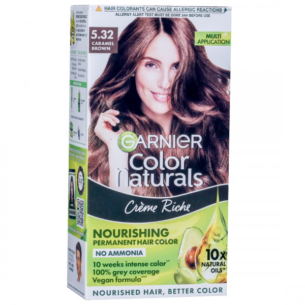 Garnier colour naturals is a creme hair colour which gives 100% grey coverage and 50% more ultra visible shine. It has a superior colour lock technology which gives rich long lasting colour that lasts upto 10 weeks. It comes with a no-ammonia formula that helps to protect the hair texture from damage.It provide nourishes the hair and leaves a shiny and silky touch.