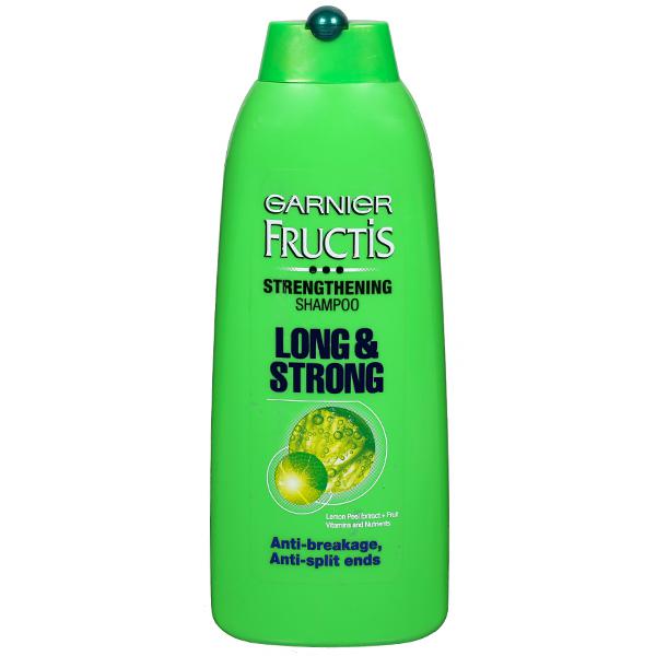 Garnier Fructis Long & Strong Strengthening Shampoo, in the net quantity of 340 ml, is enriched with Lemon Peel Extracts, Fruit Vitamins and Nutrients, which nourish and moisturize the dull, damaged hair, making it long, strong and shiny. Its unique and innovative formula makes the hair up to 5x stronger, and it also minimizes breakage and split-ends by strengthening the roots of the hair, leaving them healthy, well-nourished, silky and full of bounce..