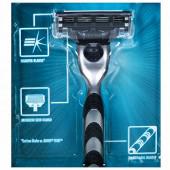 Gillette Mach 3 Front+ Razor features a pivoting head that adjusts automatically and twin blades that shave you twice with each stroke, for a faster, less irritating shave.