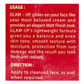Glam up -glides on your face like your most beloved cream and provides an elegant matt finish look glam up s lightweight formula gives you a balance anad even skin tone smooth texture with moisture protection from sun damage and the result you look fresh and radian