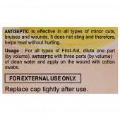Usage – For all types of First-Aid, dilute one part (by volume). ANTISEPTIC with three parts (by volume) of clean water and apply on the wound with cotton swabs.