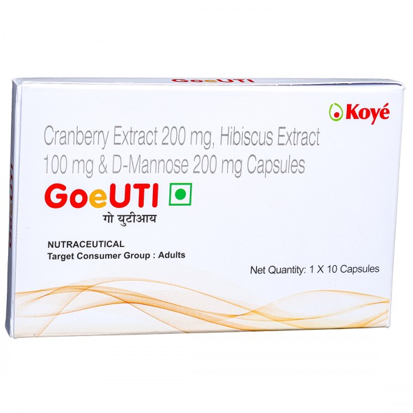 Goeuti Capsule is a nutraceutical supplement. It is enriched with Cranberry extract, Hibiscus extract & D-Mannose. It is indicated to support for acute urinary tract infections.