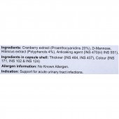 Cranberry extract (Proanthocyanidins 20%), D-Mannose, Hibiscus extract (Polyphenols 4%), Anticaking agent {INS 470(iii) INS 551}.