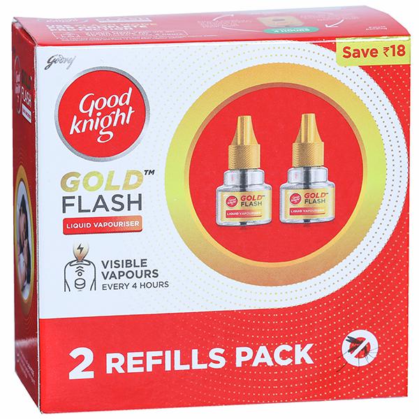 Protect your family from mosquito borne diseases by using Good Knight Gold Flash Liquid Vaporizer which the effective Gold Flash Technology to kill maximum mosquitoes. It releases visible flash vapours drives away hidden mosquitoes.