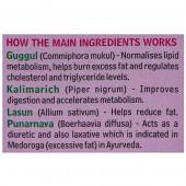 Ingredients - Guggulu, Kalimarich, Haritaki, Sonth / Dry Ginger, Lashun /Garlic.
