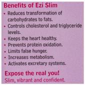 Product Information - Excess weight can cause health problems. Yet, dieting is not always the best way to lose weight. Starvation diets lead to protein oxidation (loss of muscle and water) making you regains the lost kilos once you stop dieting. Ezi Slim offers the safe alternative for getting into shape.